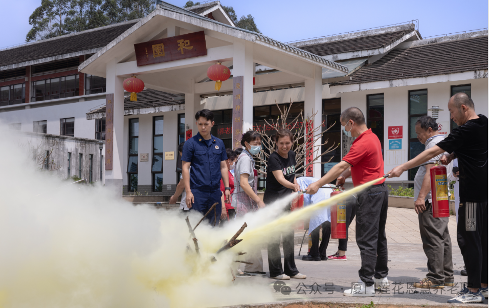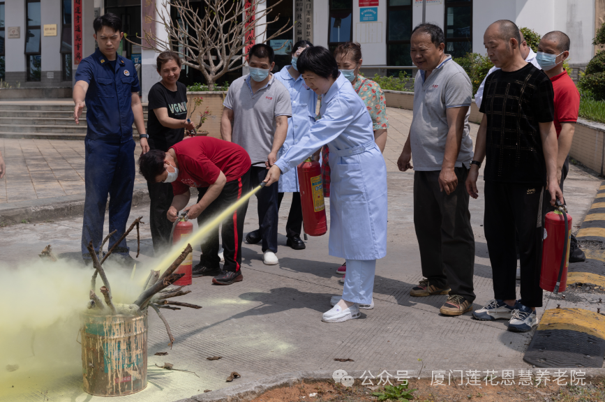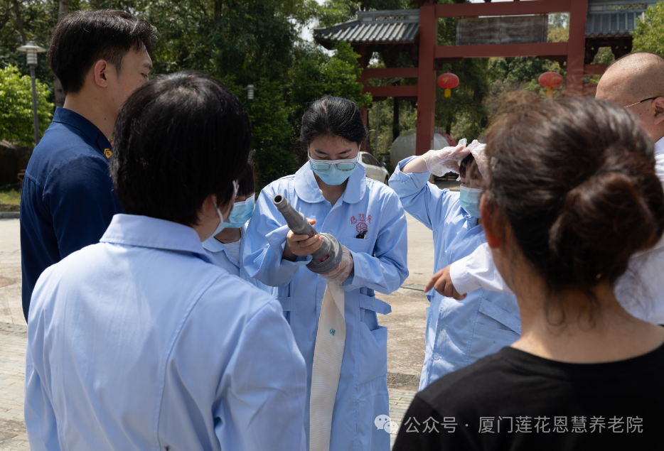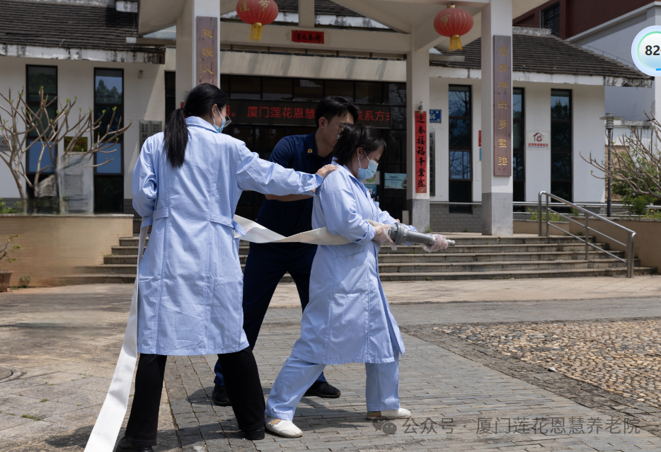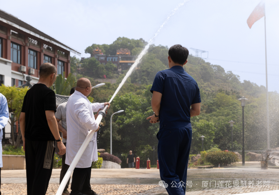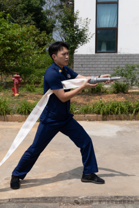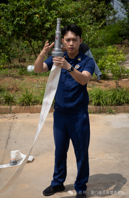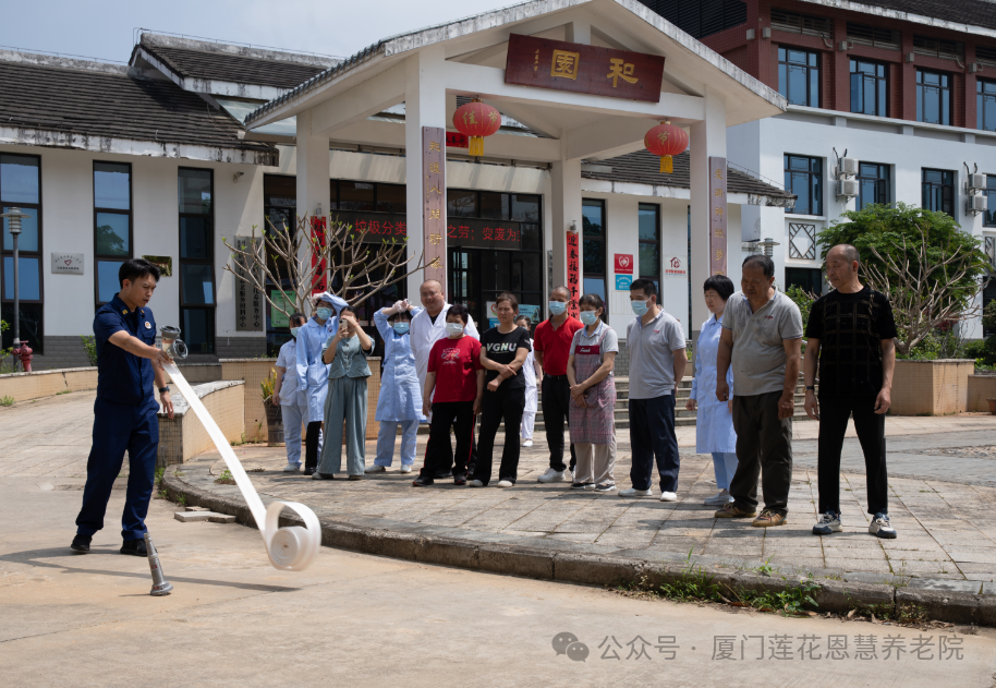 随后,消防中队人员组织敬老院全体工作人员进行消防灭火演练,近距离展示消防栓使用全部流程。