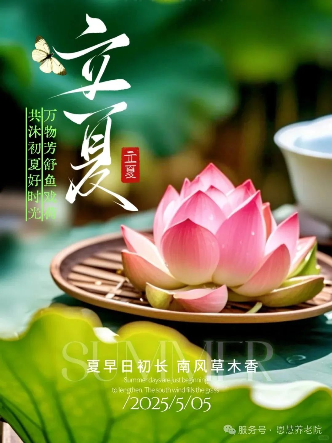立夏,是二十四节气中的第七个节气,意味着夏日的正式开始。此时气温逐渐升高,万物进入旺盛的生长期。在厦门莲花恩慧养老院,我们时刻关心长者们的健康,特为大家带来立夏养生知识与温馨提示。