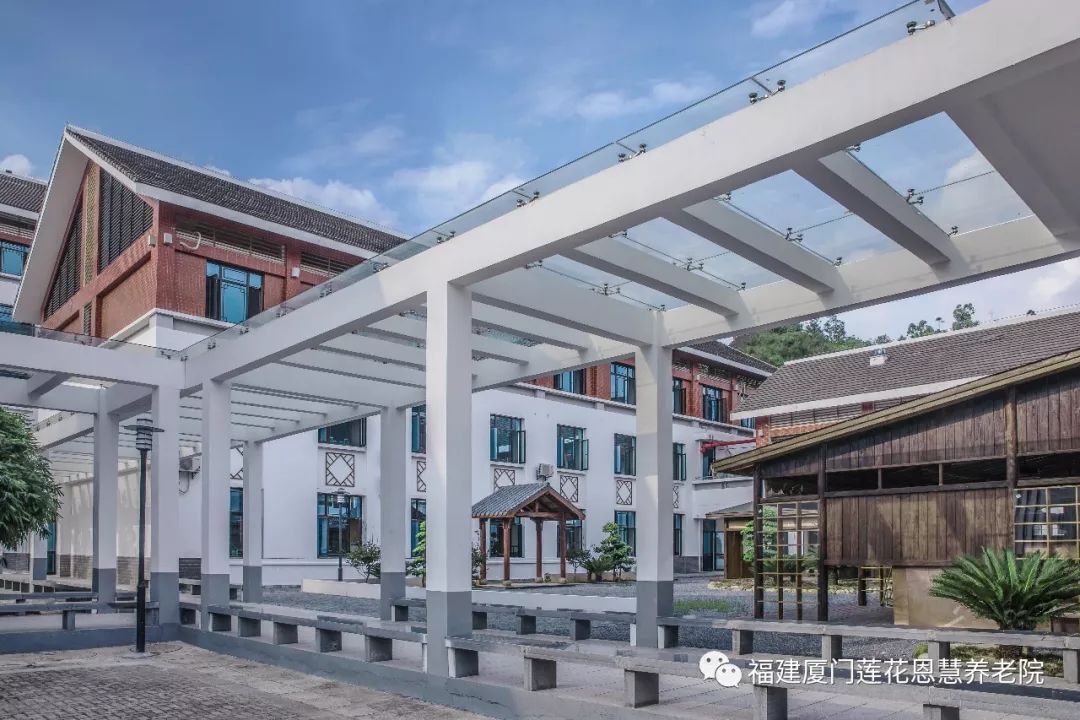传承中华传统文化和医养结合的综合型生态养生基地。院内建筑根据闽南台湾古厝民居风格建设而成,配有双人的颐养居、单人的静养居和豪华的恩慧居等,⽼年医疗、康复、护理、慢性病管理、重度残疾⼈托养、 临终关怀等服务的专业护理院,计划总设立床位580个。